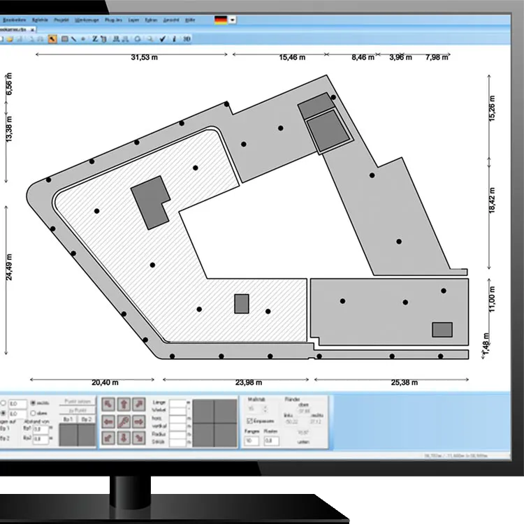 Der MF DachDesigner ermöglicht das präzise Zeichnen kompletter Dachaufbauten. Perfekt für Angebot, Kundenberatung und technische Nachweise – inklusive nahtloser Übergabe an die Berechnungsmodule.
