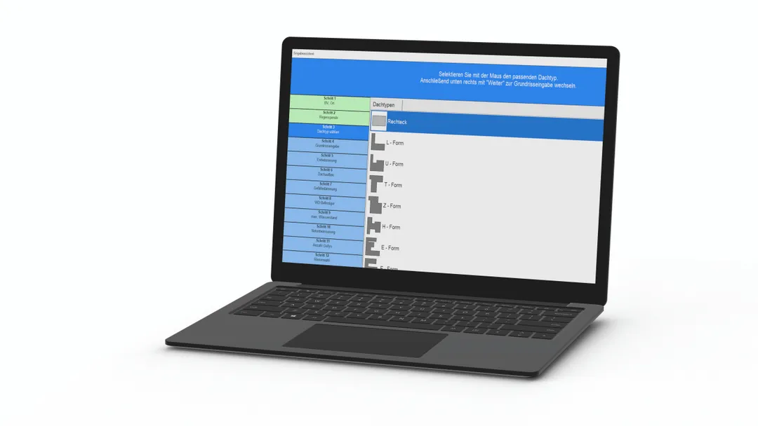 Die Vorgehensweise zur Berechnung mit unserem Dachdeckerprogramm ist dabei denkbar einfach: